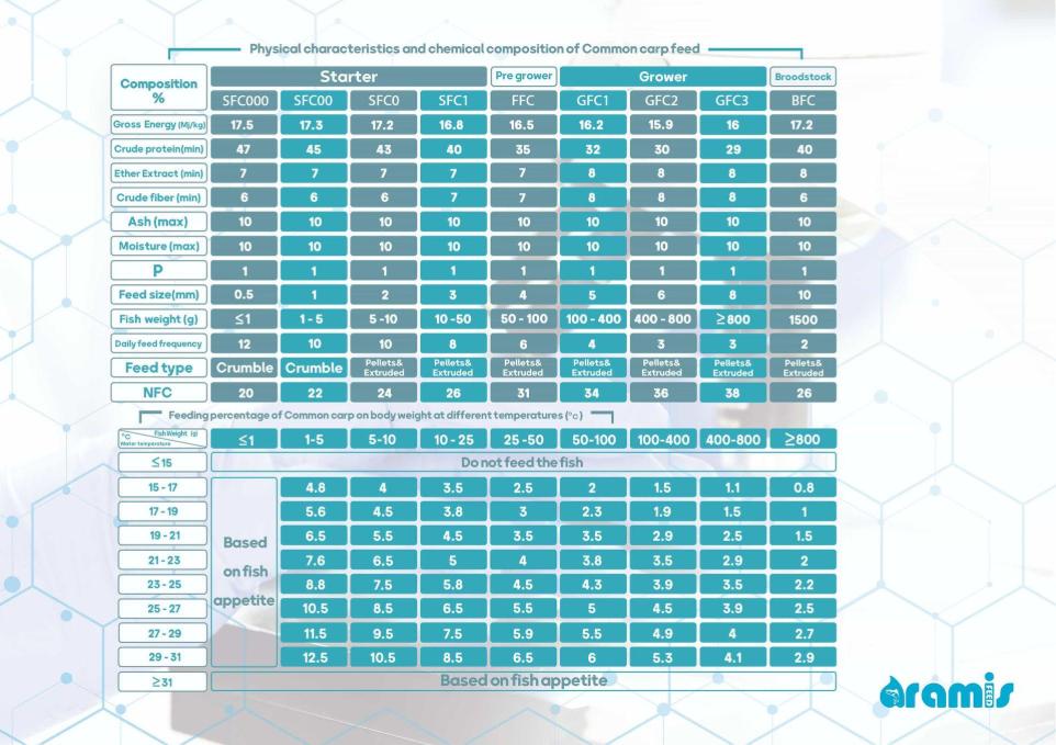 این ماهی گونه اصلی پرورشی در مناطق شمال و جنوب بوده و نقش مهمی در صنعت آبزی پروری کشور دارد. با توجه به اهمیت این گروه از ماهیان، شرکت پیشگام دامپرور سپاهان با بهره گیری از توانمندیهای خود خوراک کپور ماهیان را با ویژگیهای زیر تولید و با قیمت رقابتی و اقتصادی، در اختیار پرورش دهندگان قرار میدهد.