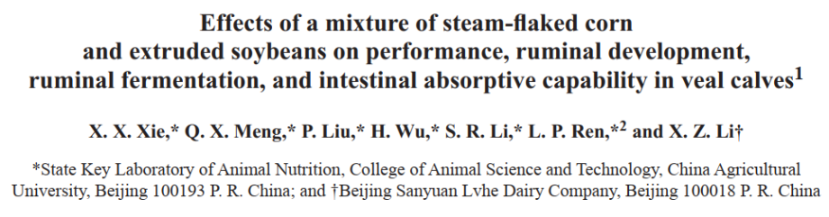 Xie, X., et al., Effects of a mixture of steam-flaked corn and extruded soybeans on performance, ruminal development, ruminal fermentation, and intestinal absorptive capability in veal calves. Journal of animal science, ۲۰۱۳. ۹۱(۹): p. ۴۳۱۵-۴۳۲۱.
