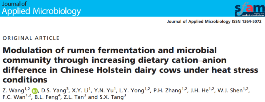 Wang, Z., et al., Modulation of rumen fermentation and microbial community through increasing dietary cation–anion difference in Chinese Holstein dairy cows under heatstress conditions. Journal of Applied Microbiology, ۲۰۲۱. ۱۳۰(۳): p. ۷۲۲-۷۳۵.
