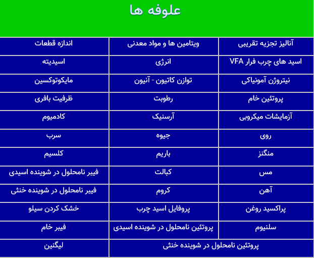 - بکارگیری پیشرفتهترین تجهیزات و دستگاههای مربوط به آنالیز خوراک دام و طیور